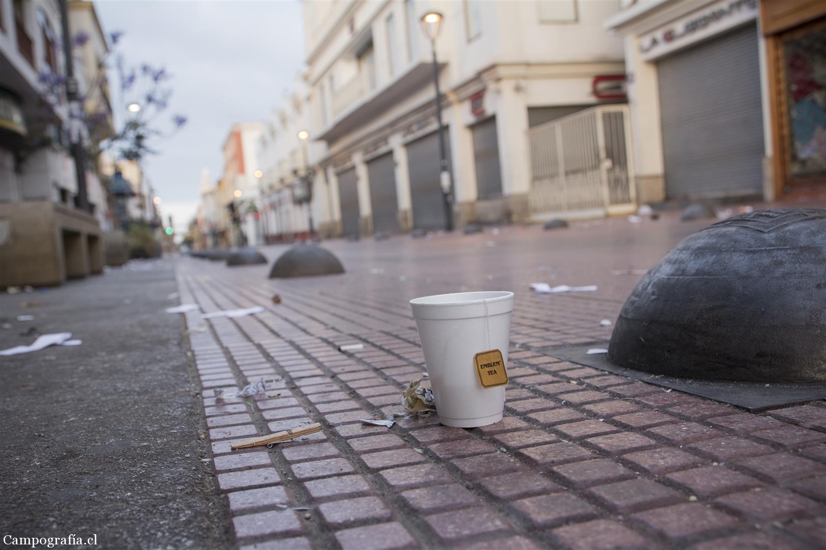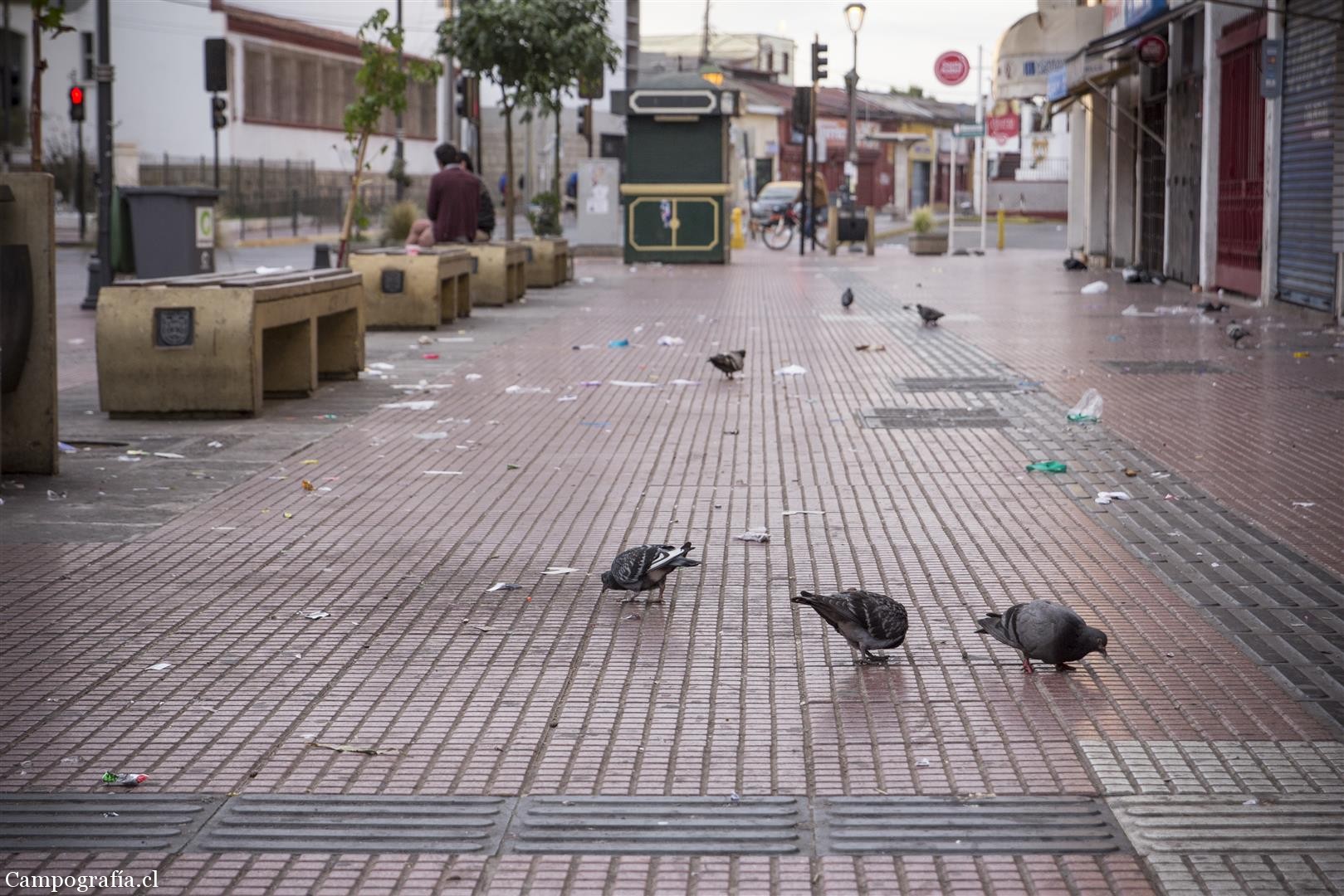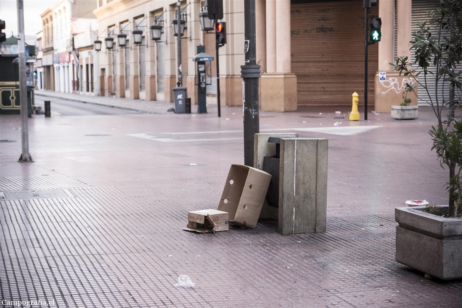 En la mañana, por el centro de La Serena, solo vestigios quedaron de lo que fue la previa de la navidad. Las palomas eran las únicas rematando lo que quedó. En la noche habian mas cajas, asi que seguro pasaron recogiendo los cartones antes de llegar. Mucha basura y papeles. Por suerte la limpieza llegó mas tarde.