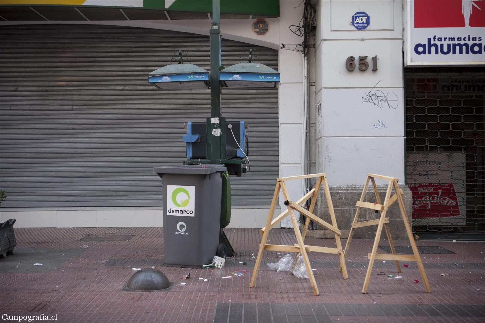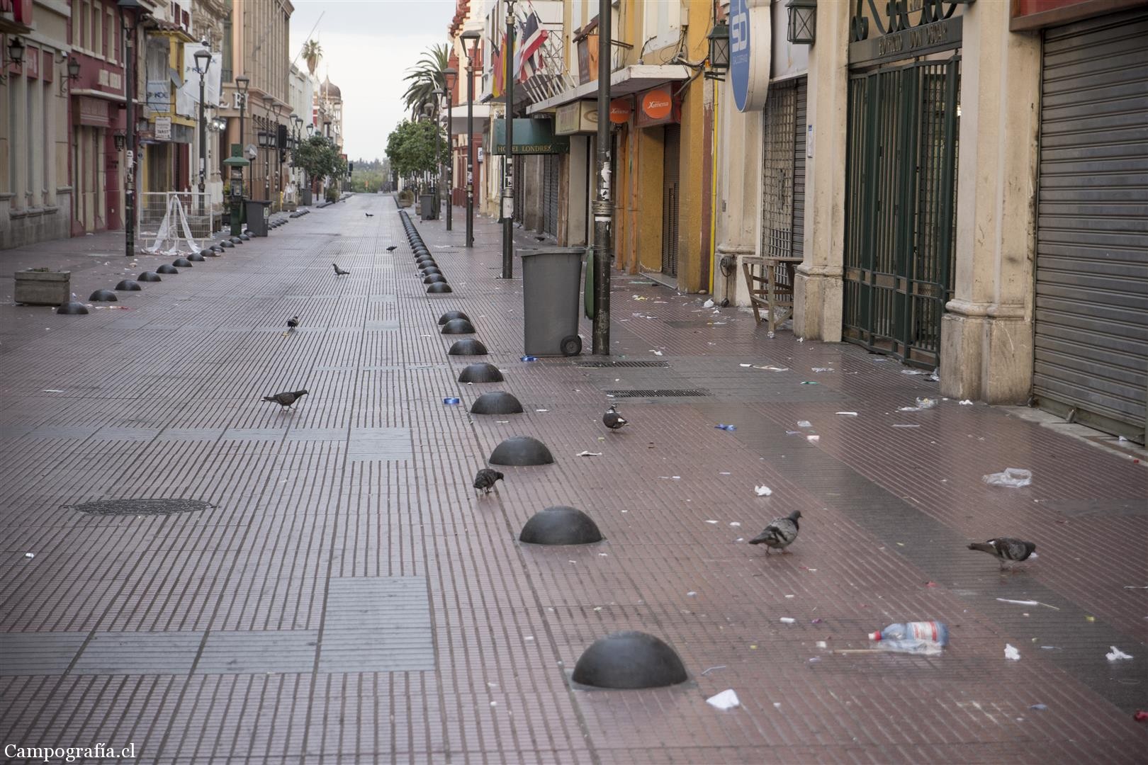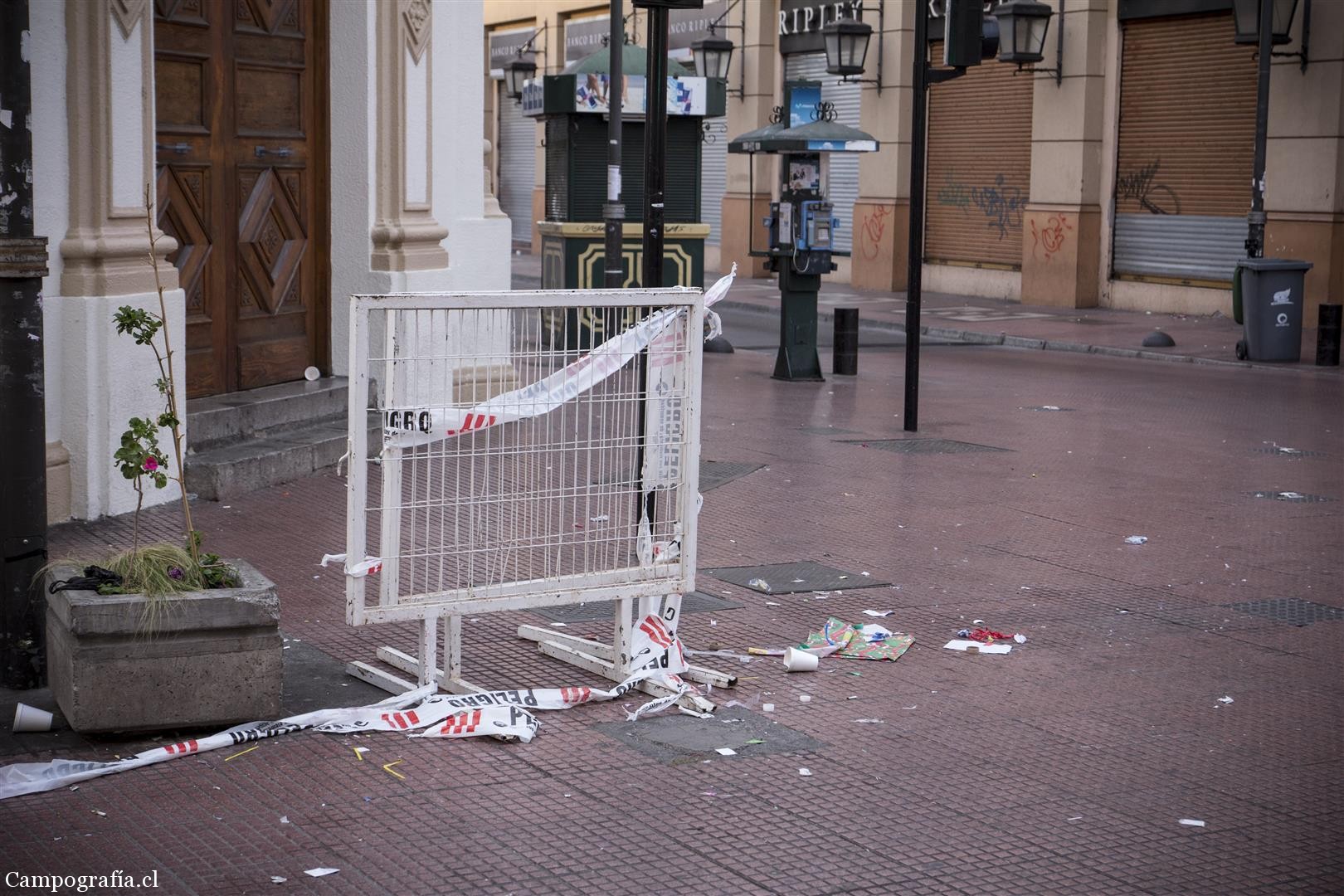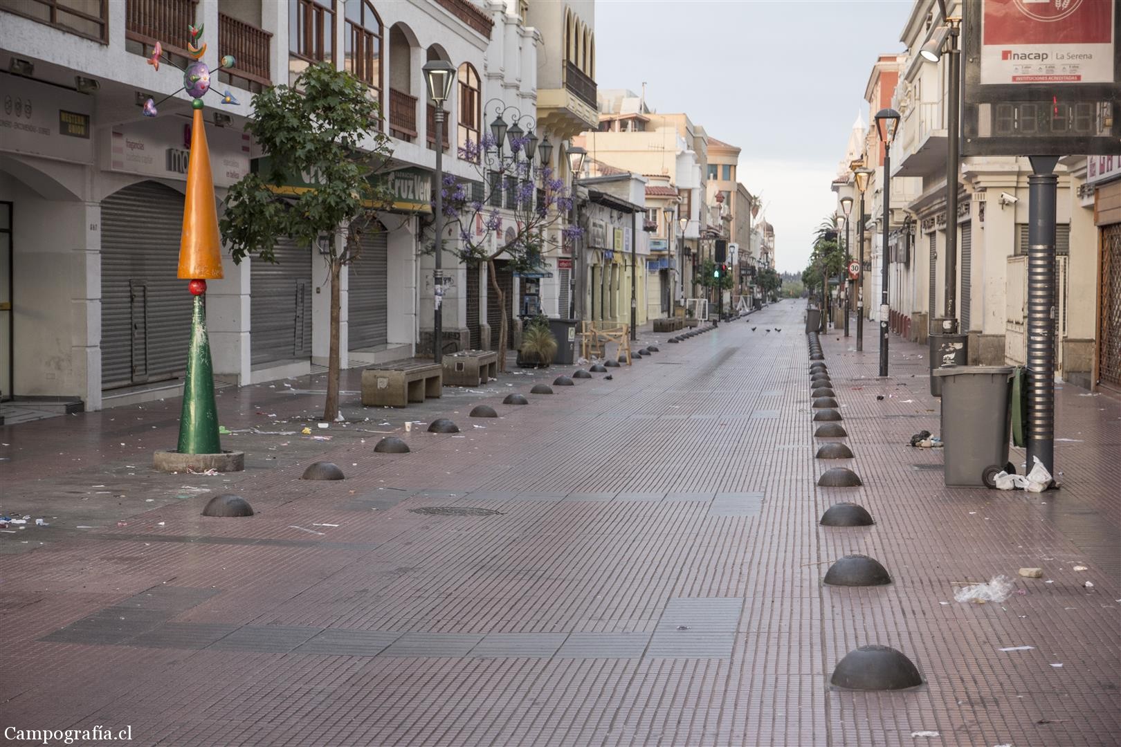En la mañana, por el centro de La Serena, solo vestigios quedaron de lo que fue la previa de la navidad. Las palomas eran las únicas rematando lo que quedó. En la noche habian mas cajas, asi que seguro pasaron recogiendo los cartones antes de llegar. Mucha basura y papeles. Por suerte la limpieza llegó mas tarde.