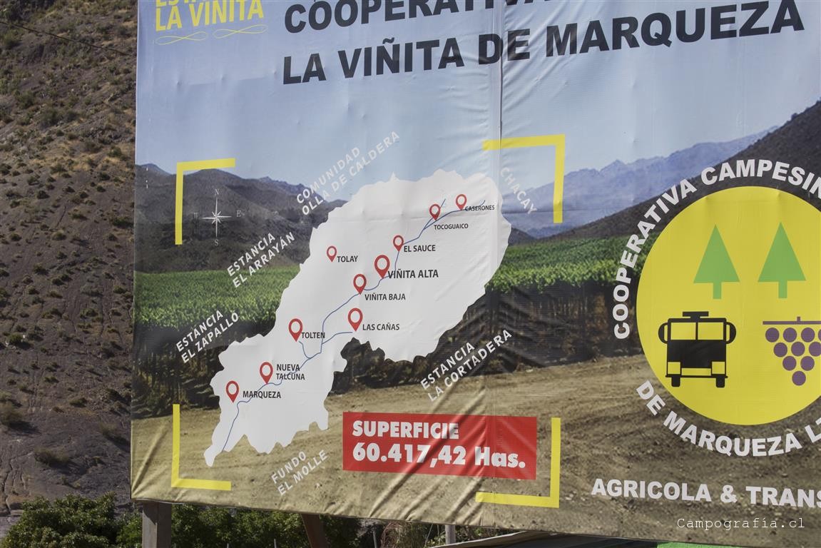 Ruta 41, de Marquesa al interior, al fondo se encuentra la majada El Chañar, el ultimo lugar donde se puede llegar. Despues de Marquesa y Nueva Talcuna se atraviesa una minera, despues se llega a Viñita Baja, donde está el desvío a Condoriaco. Desde aqui ya el paisaje se pone mas verde: plantaciones, arboles y loros aparecen alrededor. Despues se llega al poblado de Viñita Alta, donde poo a poco las plantaciones dejan de aparecer, dejando al lecho del «rio» como principal protagonista del paisaje. Montes con una escasa vegetación, pero con indicios de una abundante anteriormente.
