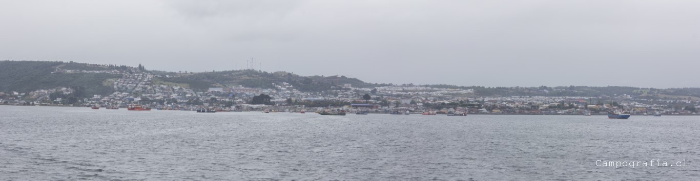 Vista de Quellón desde el hito Cero
