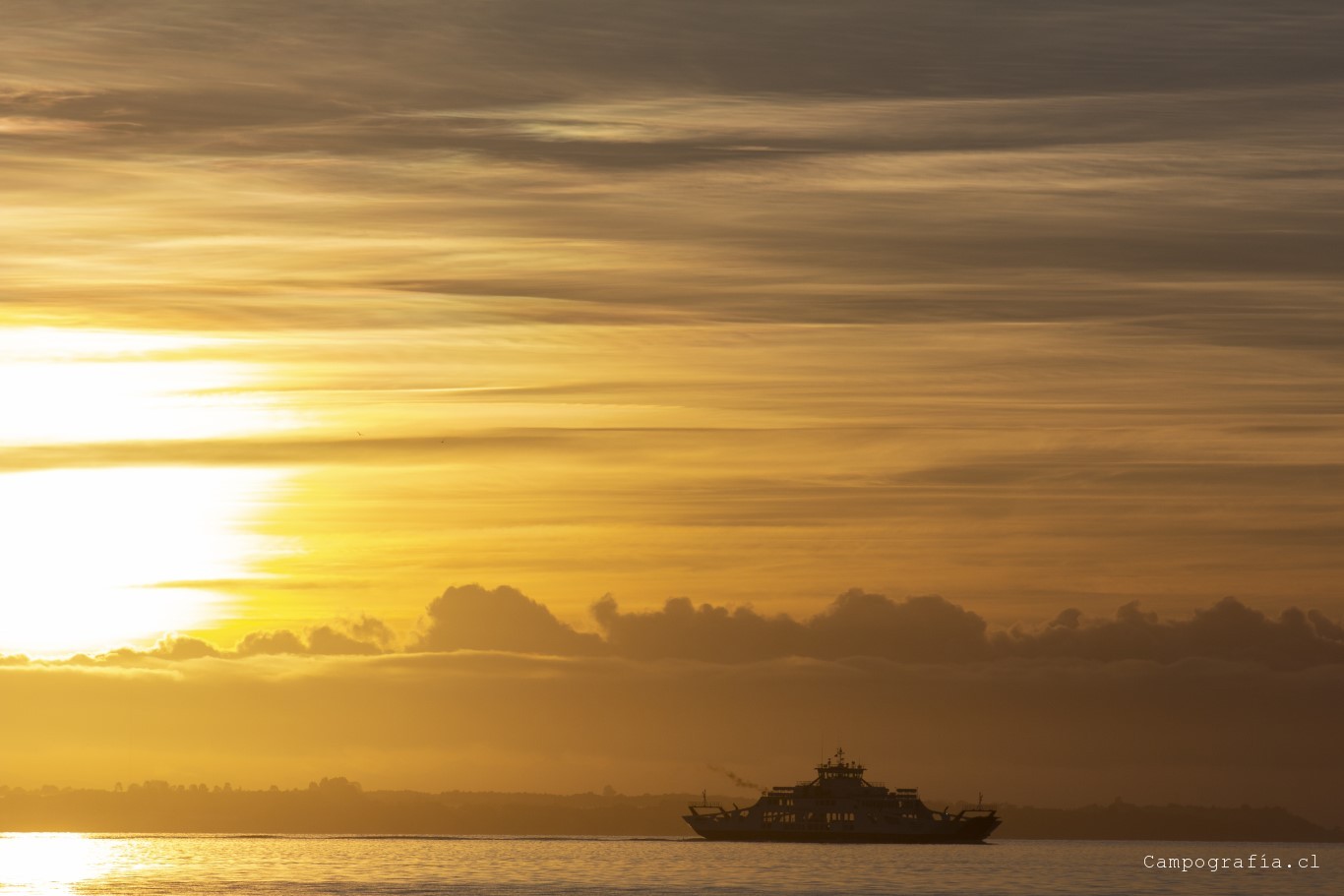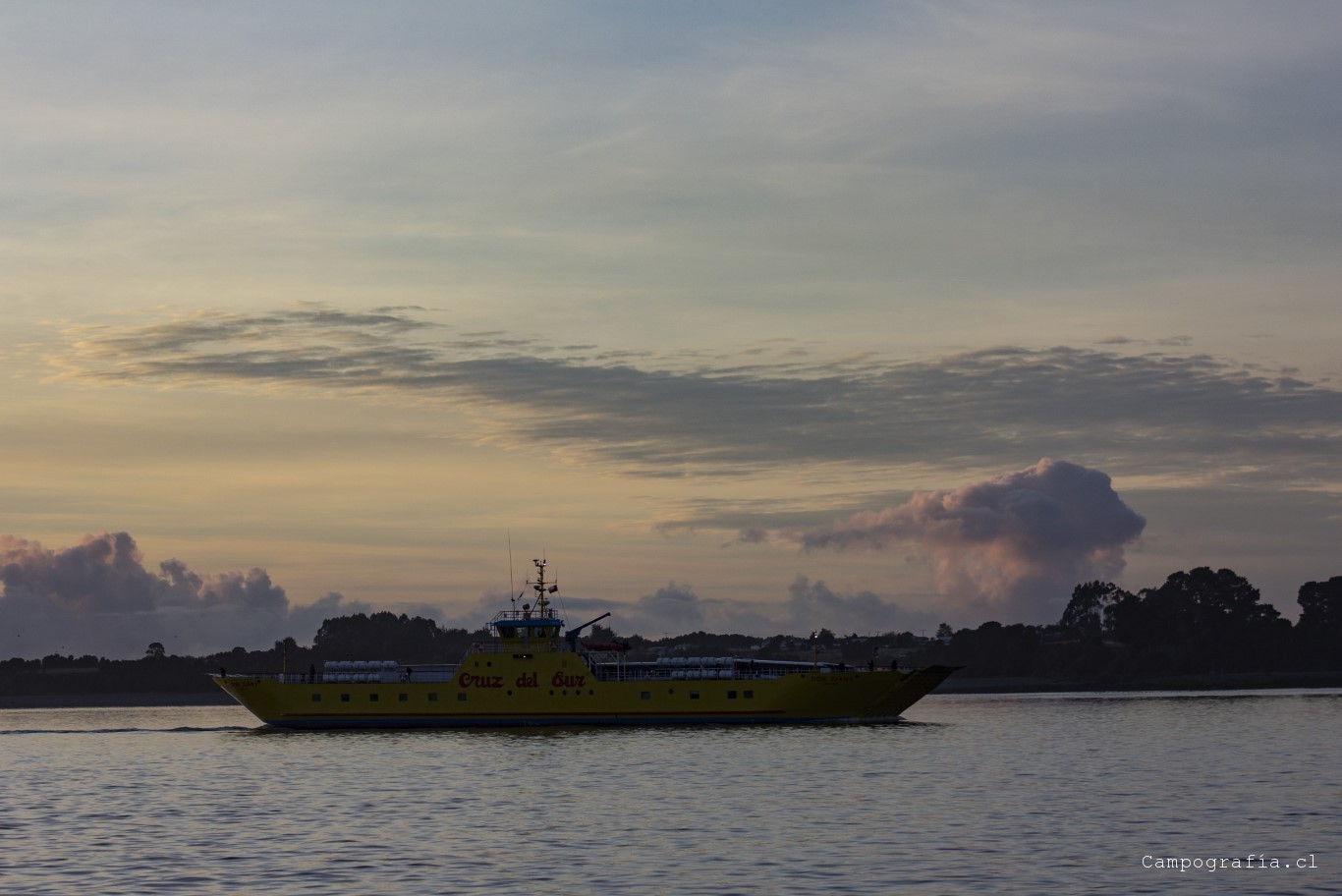 Salimos temprano. Mucho frio y autos. Una ruta bien transitada a toda hora. El amanecer nos tocó en la barcaza…
