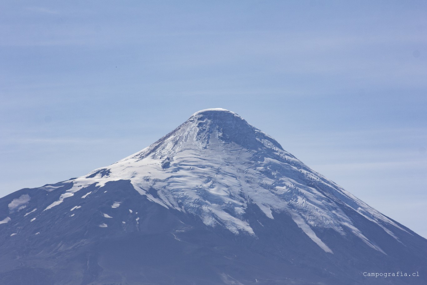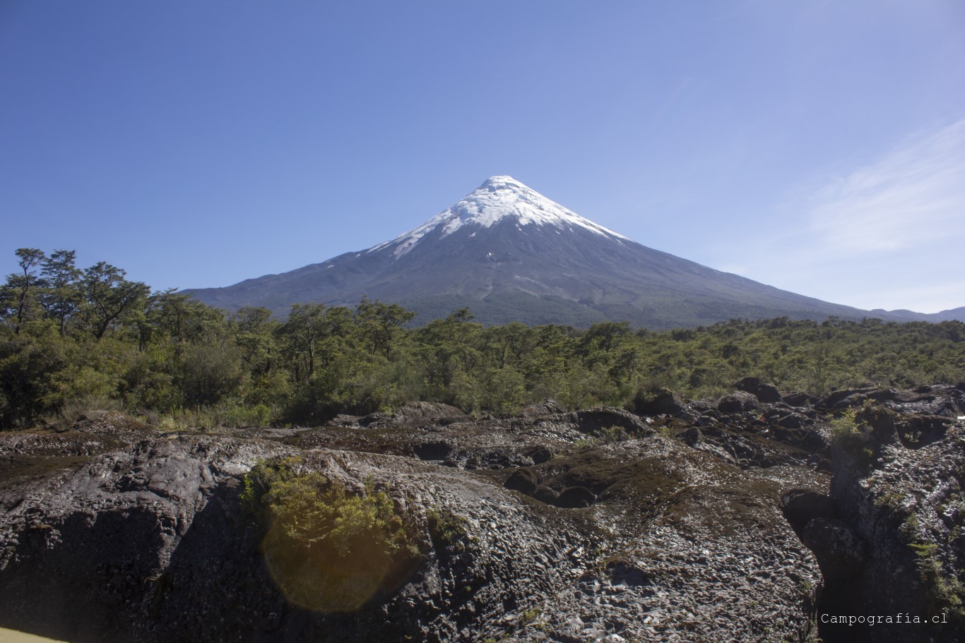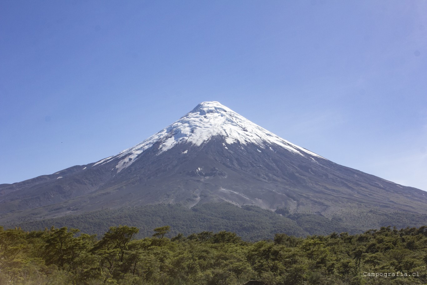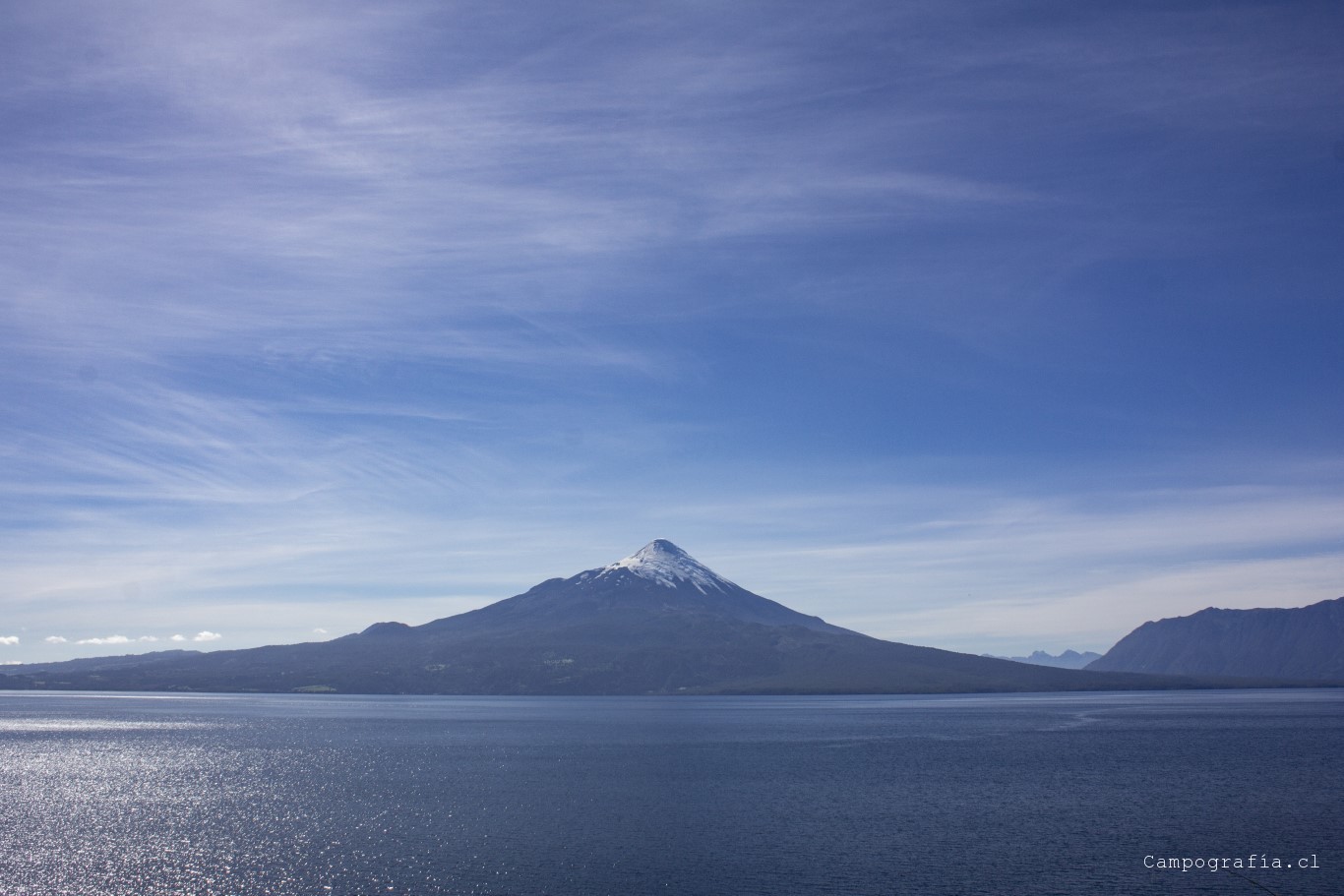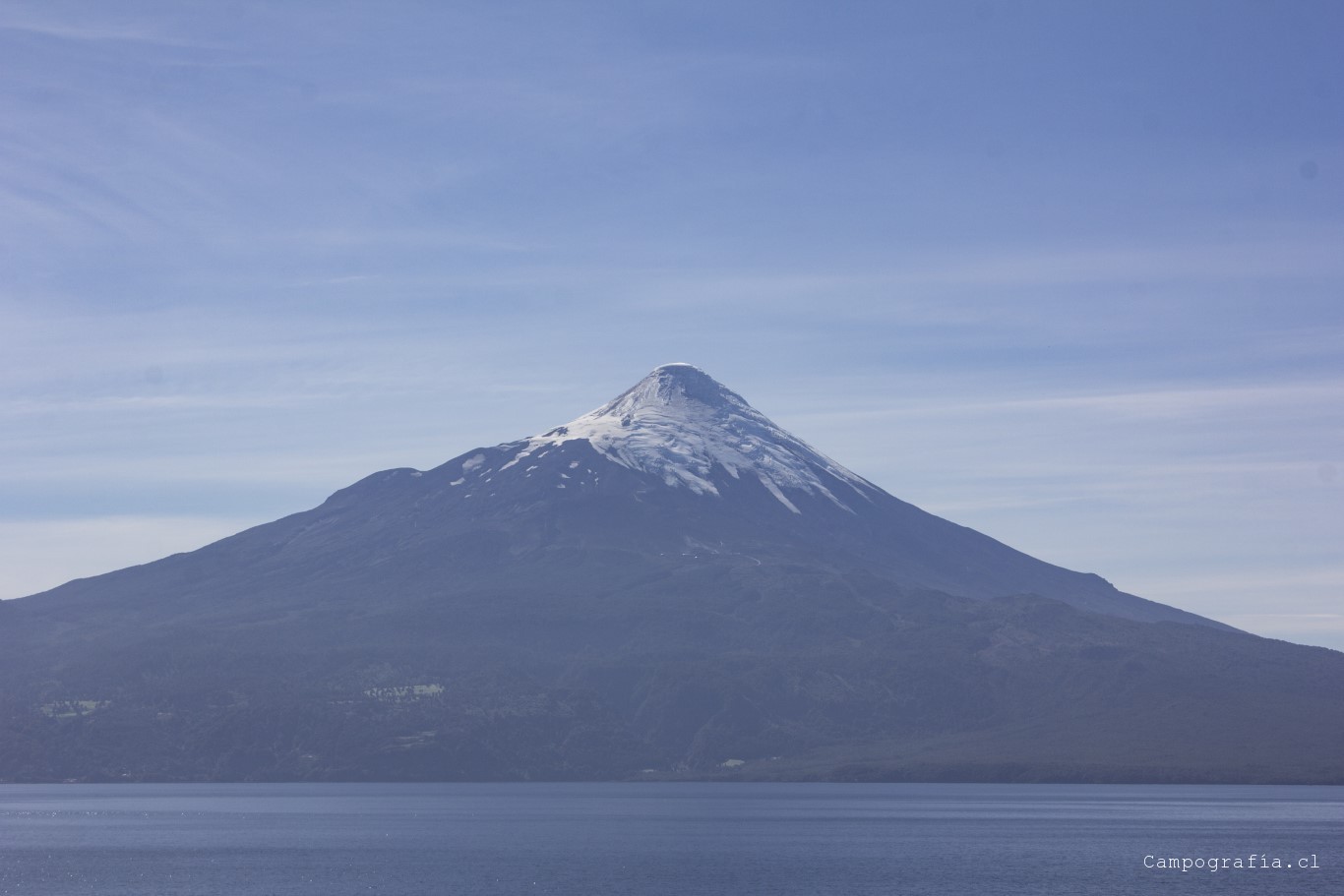 Bordeando el Lago Llanquihue. El volcán Osorno acapara la vista de todo paisaje.