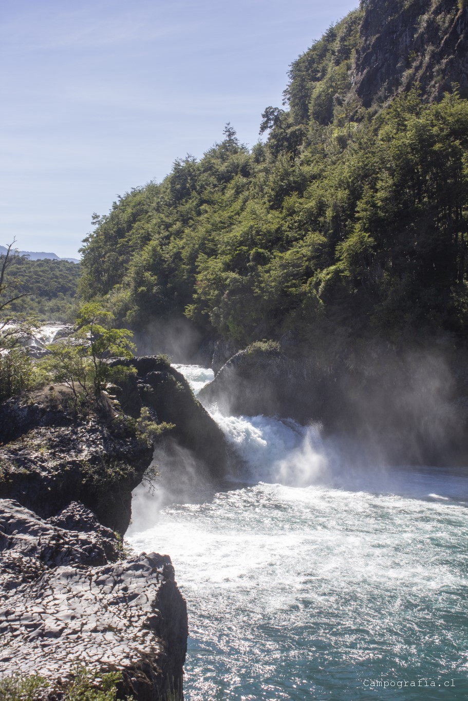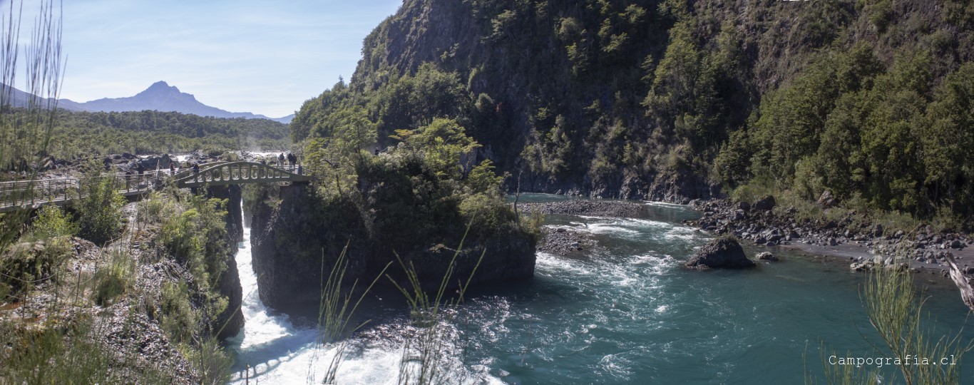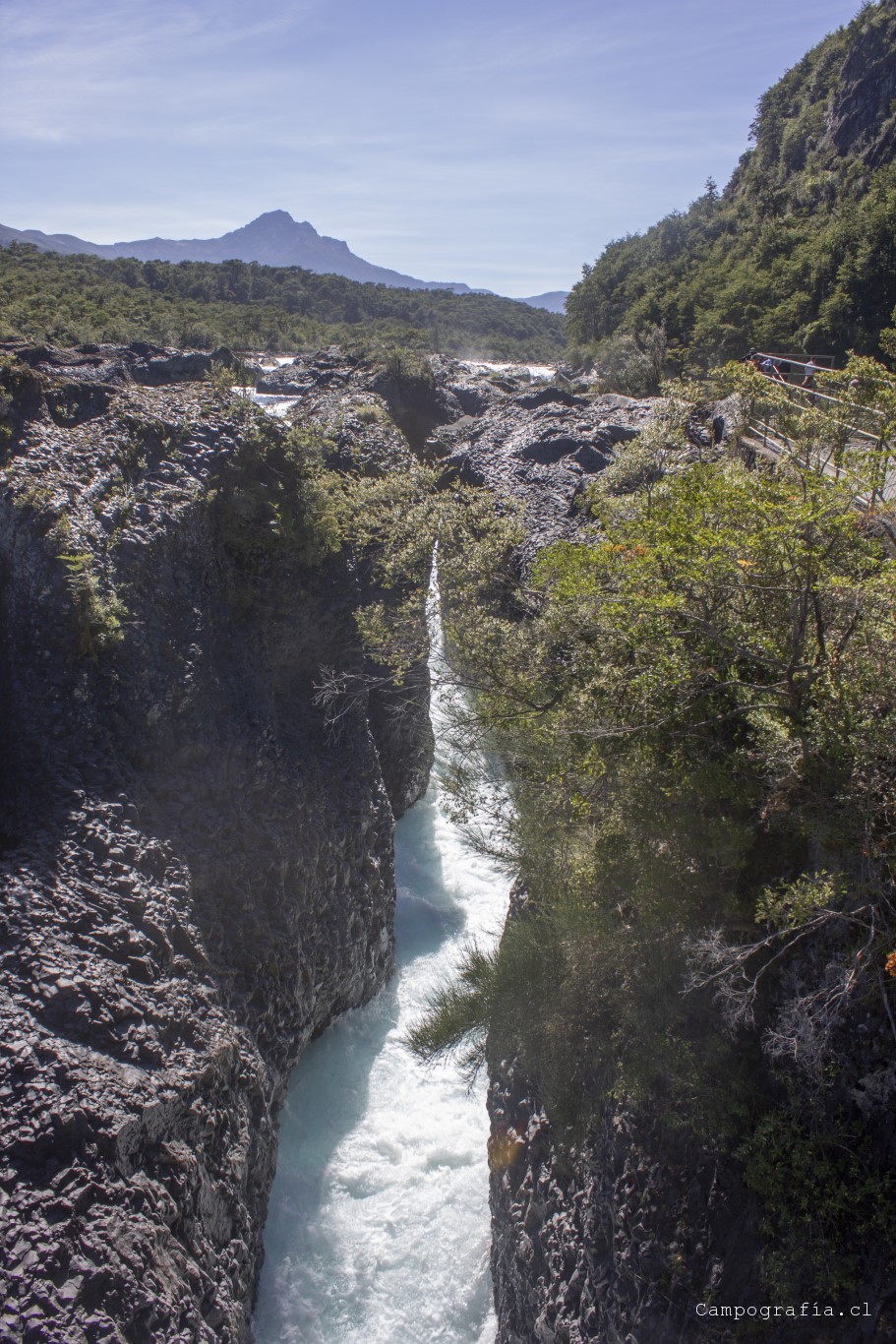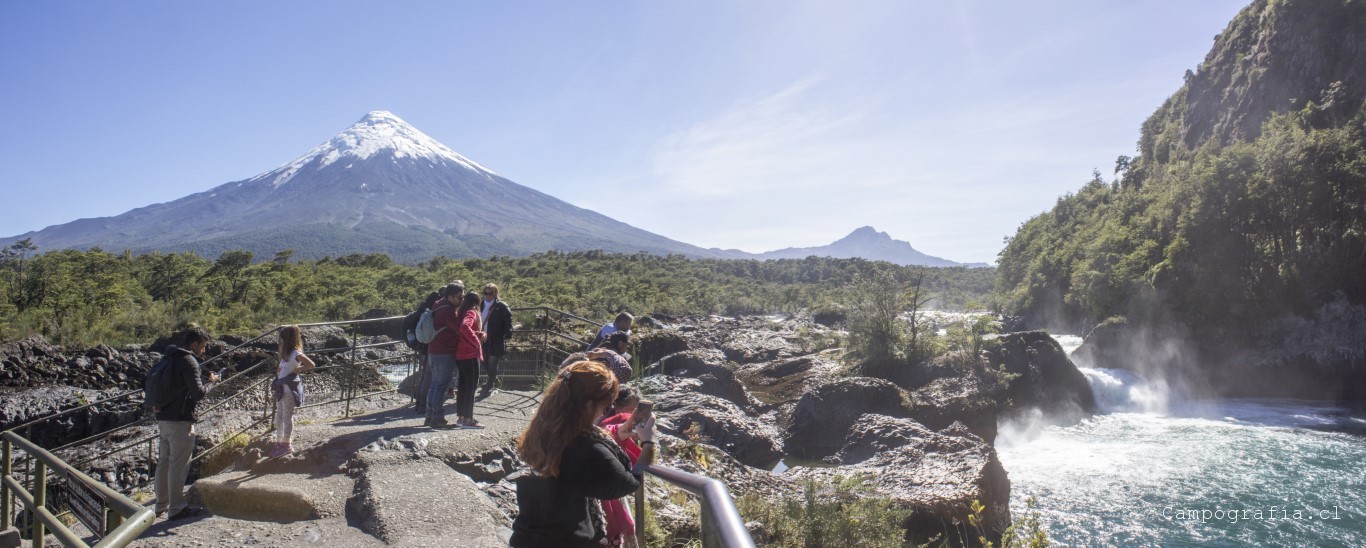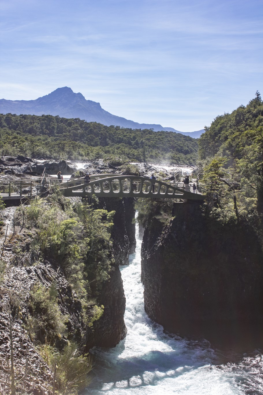 Llegamos a los Saltos de Petrohué, e inexplicablemente estaba lleno de turistas, todo funcionando.