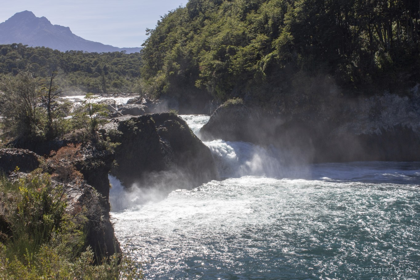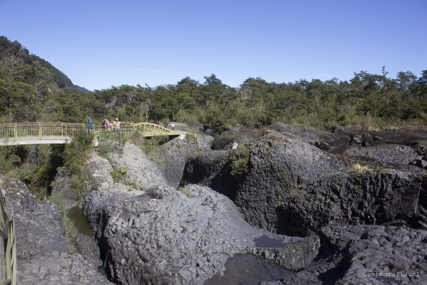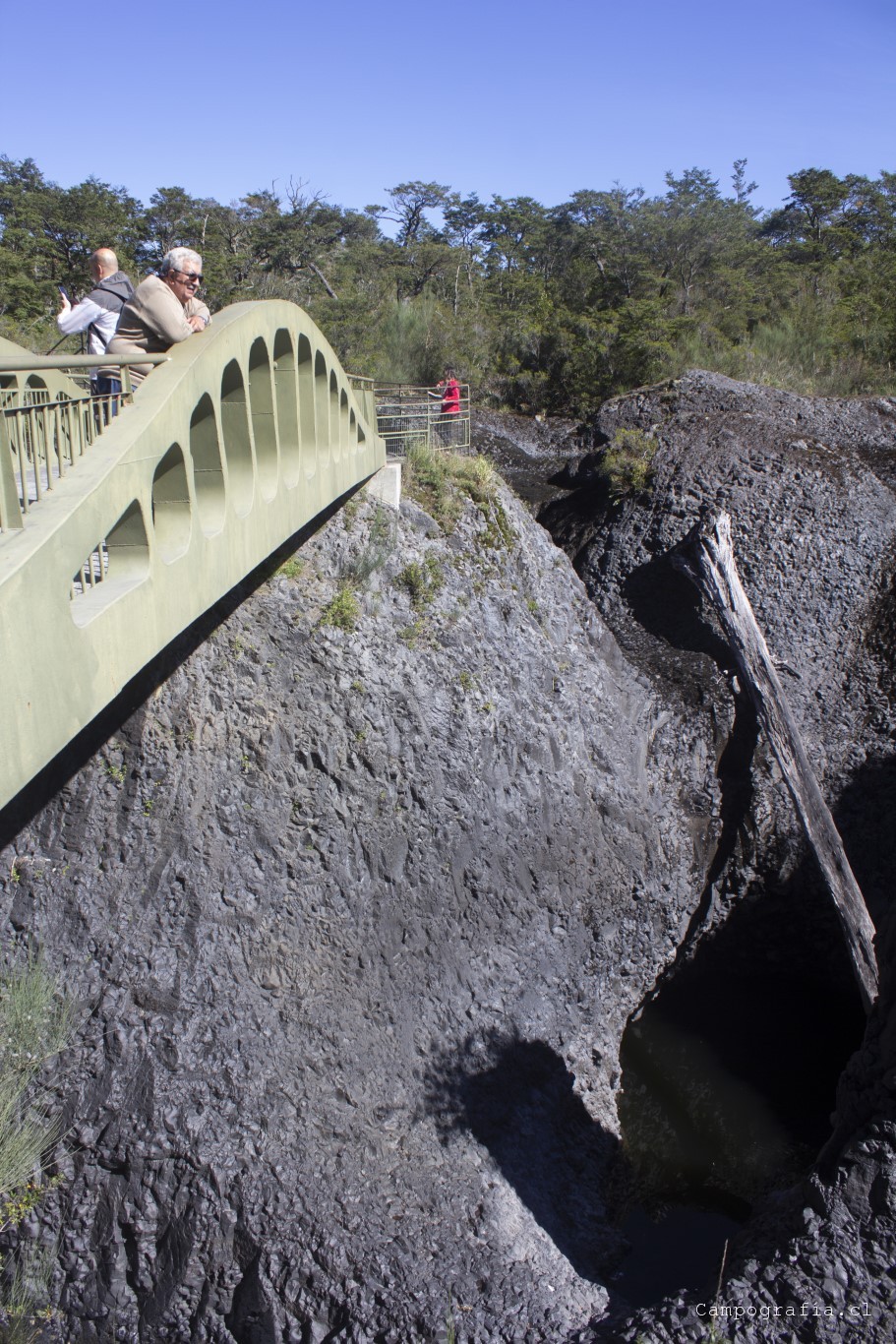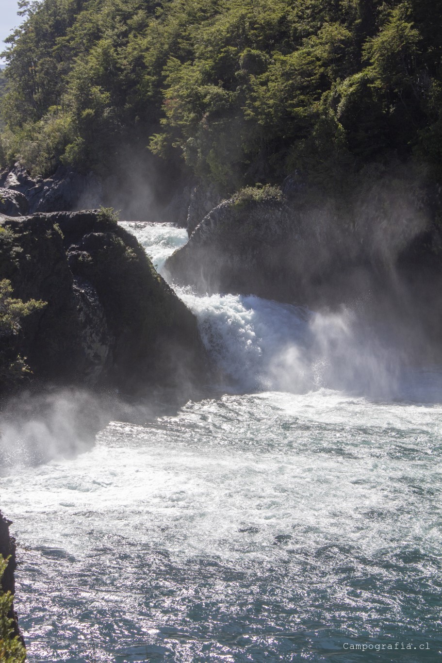Llegamos a los Saltos de Petrohué, e inexplicablemente estaba lleno de turistas, todo funcionando.