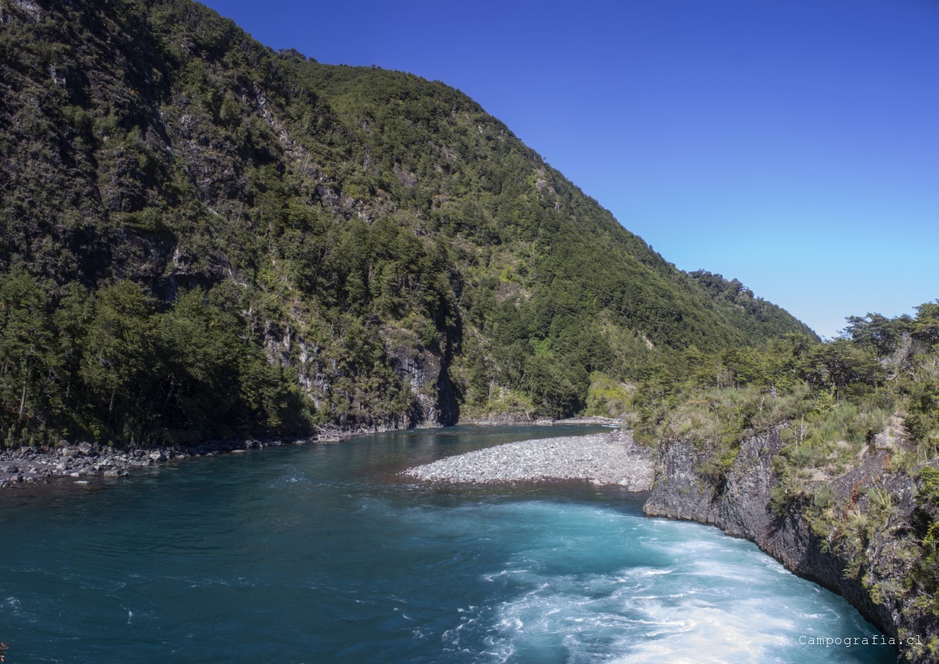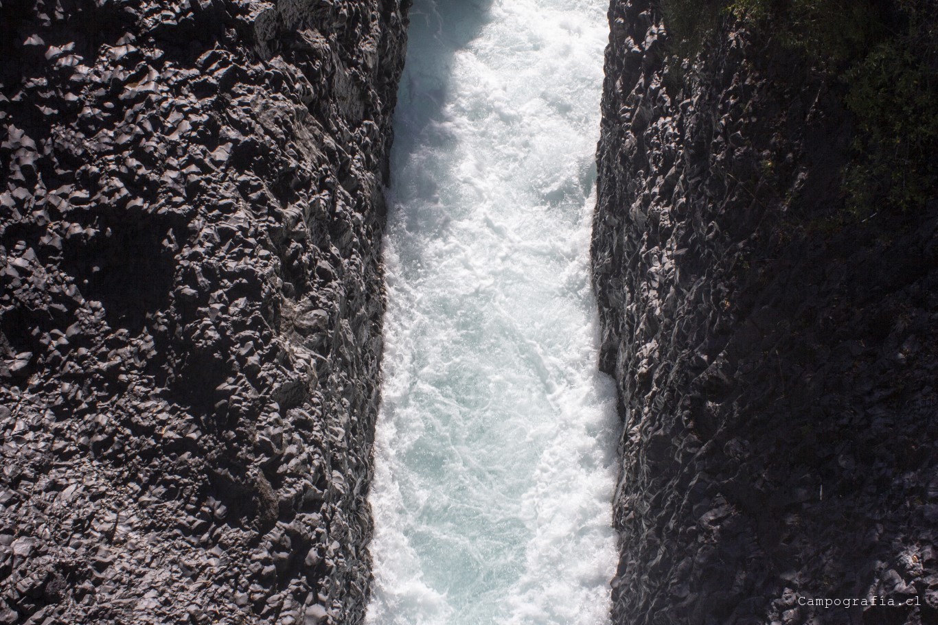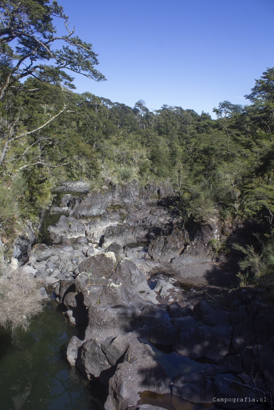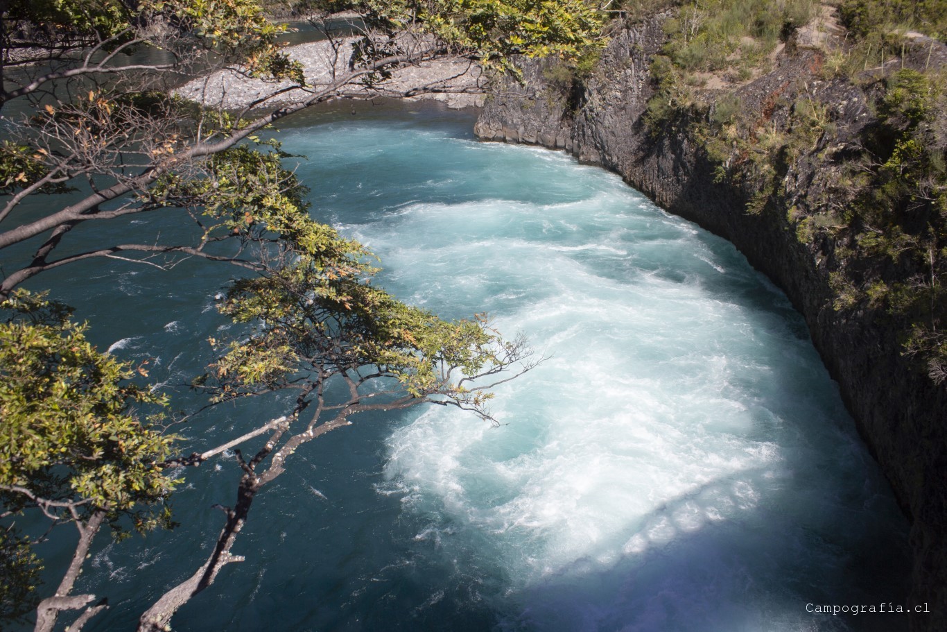 Llegamos a los Saltos de Petrohué, e inexplicablemente estaba lleno de turistas, todo funcionando.