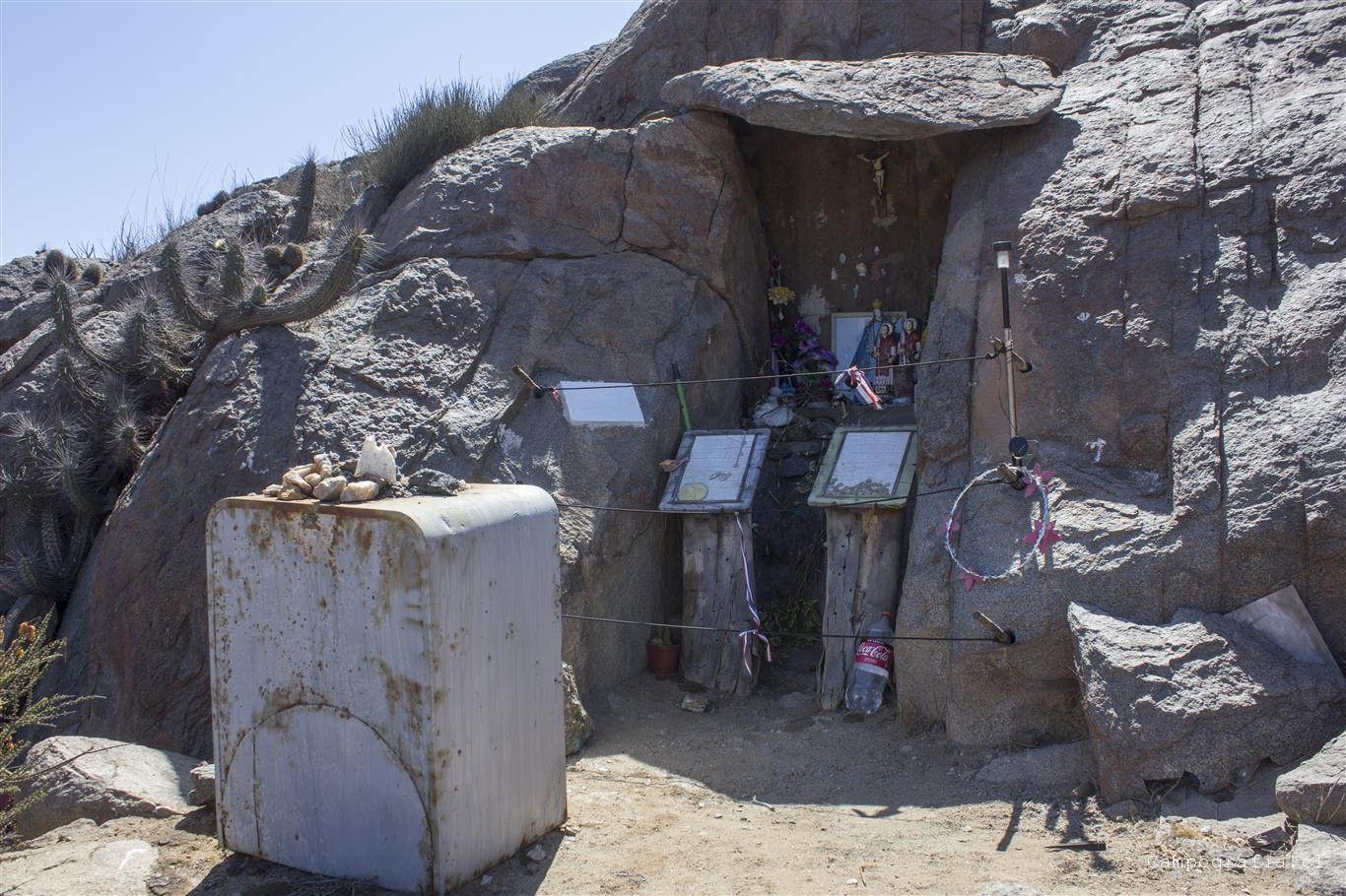 De huasco directo a freirina y, sin entrar, tomamos la ruta hacia hacia el sur. Ahi nos topamos primeramente con el Santuario del Minero. lugar de peregrinación, bien arreglado por lo demás. Al lado de este lugar se encuentar un bandonado jardín botánico, con lugares para hacer picnic. Desgraciadamente el abandono del lugar y la falta de sombra espanta a quien quiera descansar aqui.