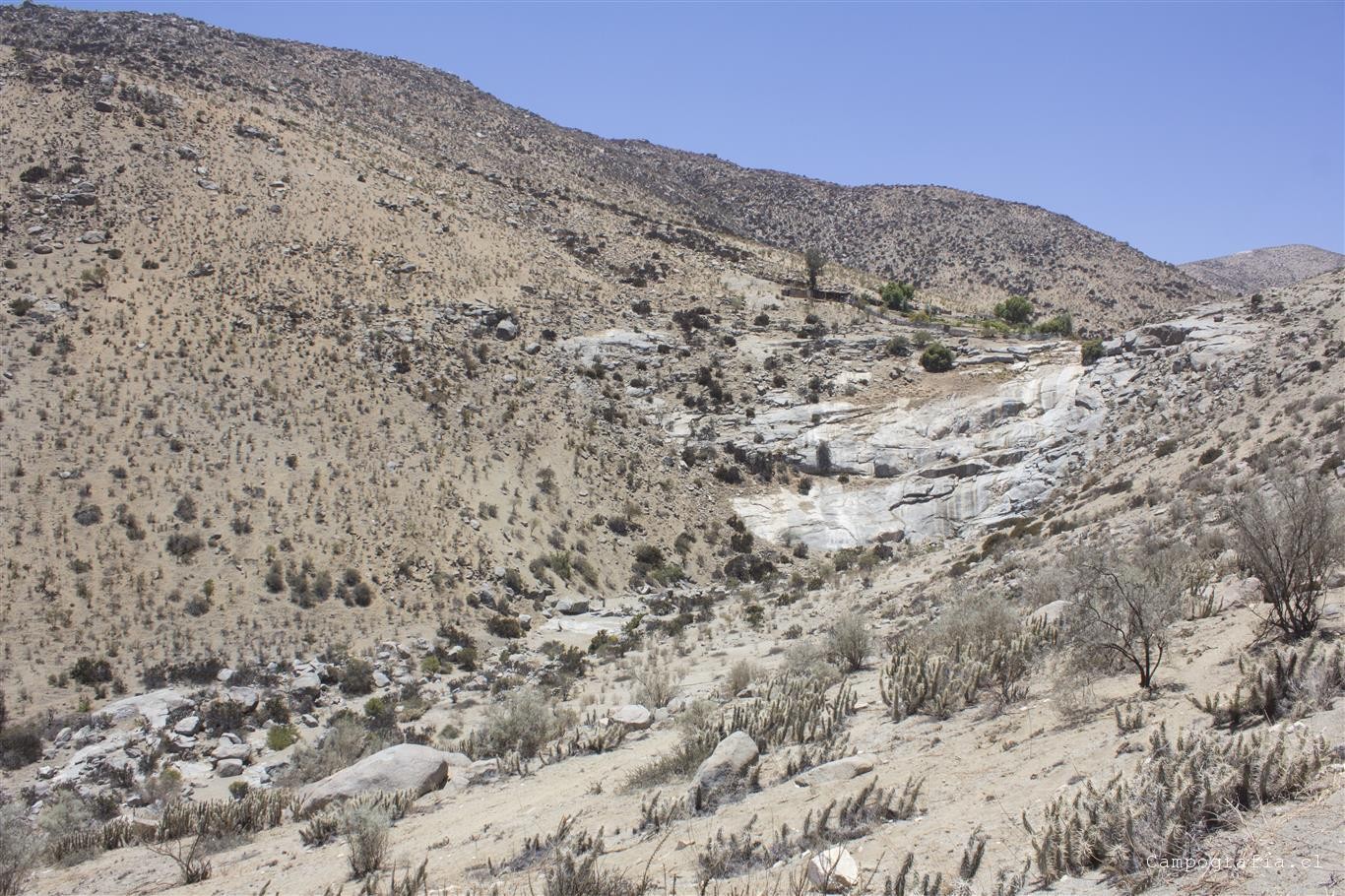 Un letrero nos desvió hacia una quebrada donde anunciaban arte rupestre. Desgraciadamente estaba en la cima de un cerro y no teniamos muchas ganas de subir. Asi que lo dejamos para otra vez.