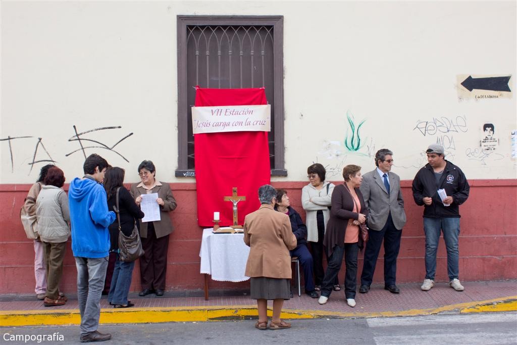 Se recorrió desde San Agustín, por Prat, hasta la Merced, despues por balmaceda hasta eduardo de la Barra, despues hasta Pedro Pablo, Cordovez Matta, Prat, Carrera, terminando en la Catedral. Las calles cerradas, y sin mucha gente transitando, hizo de este Via Cruxis un buen paseo.