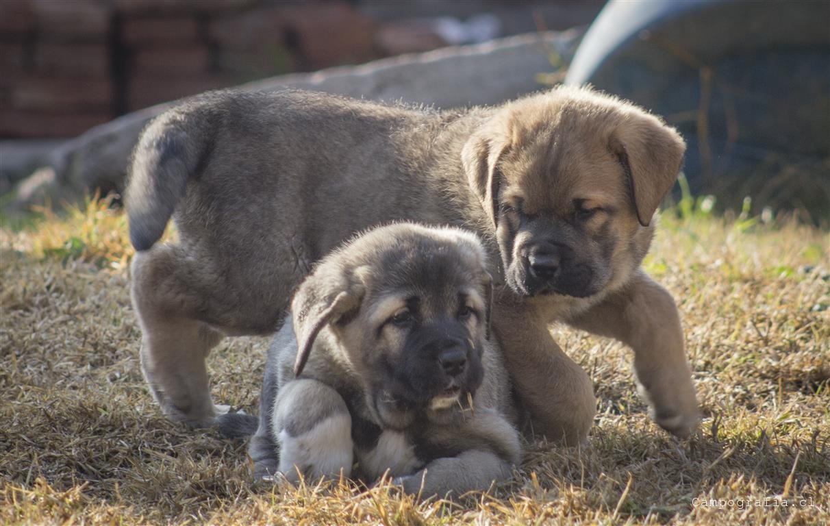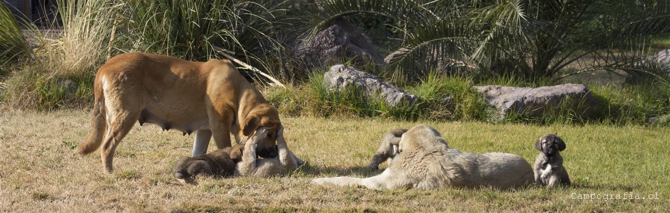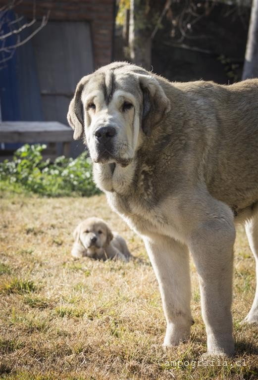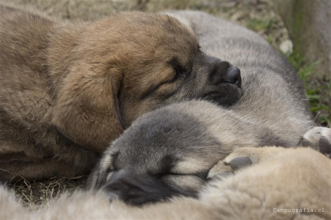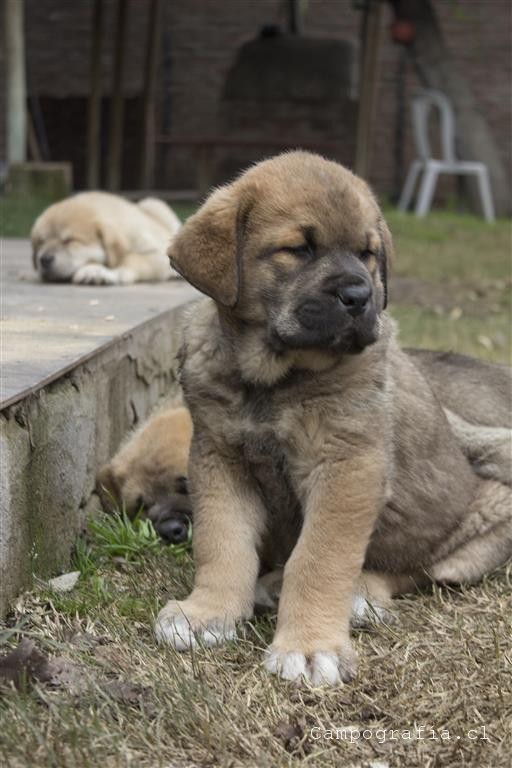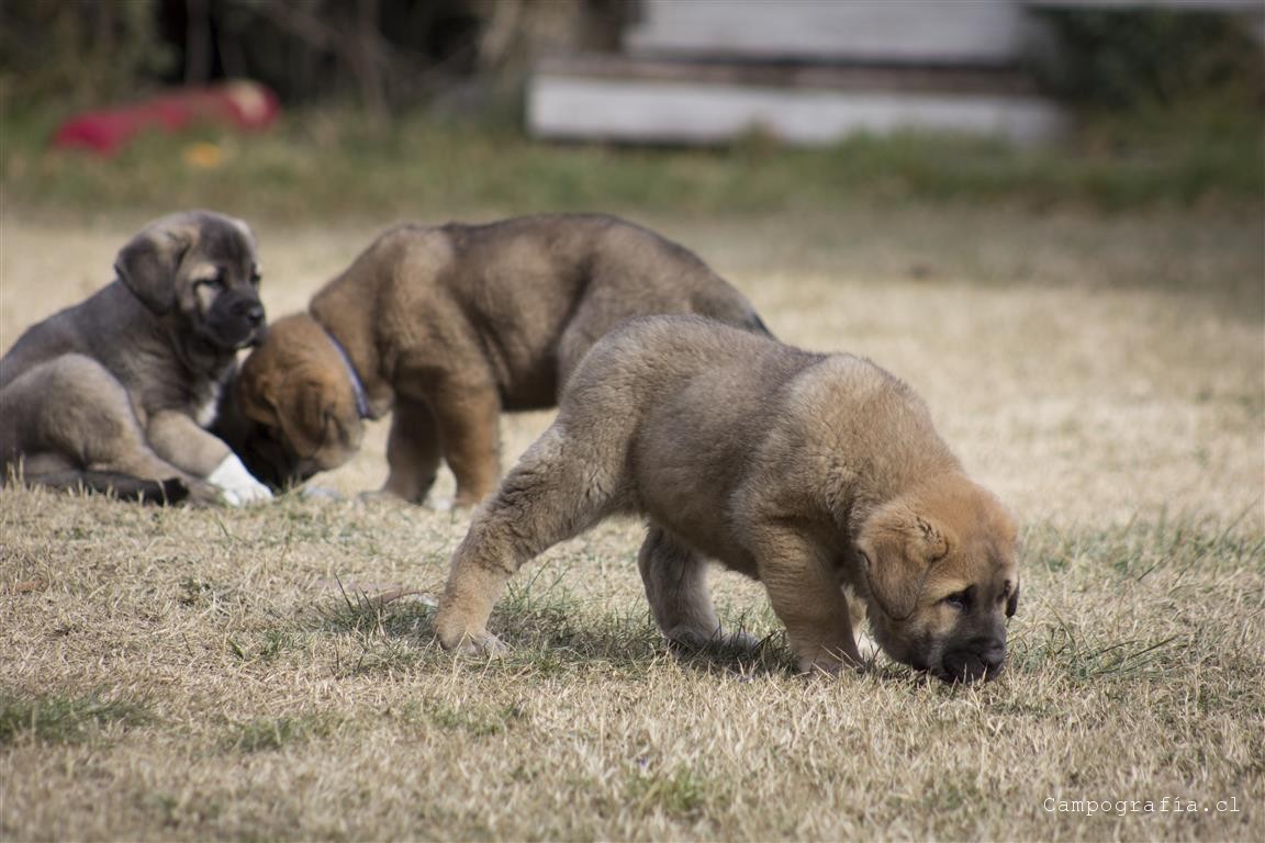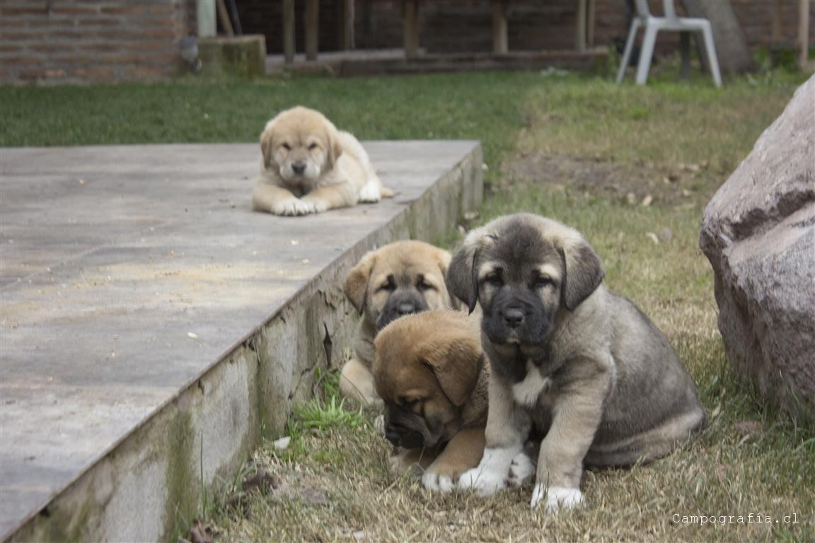 Mastín español es su raza. De padres inscritos y abuelos inscritos con premios, ellos están buscando un hogar. Aslan, León, Ámbar y Sara por el momento solo duermen y comen. Llevan un mes en este mundo y ya estan gigantes. Miren al papá, que sólo tiene un año…