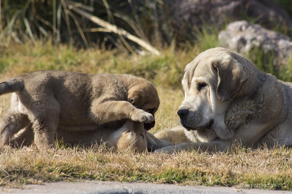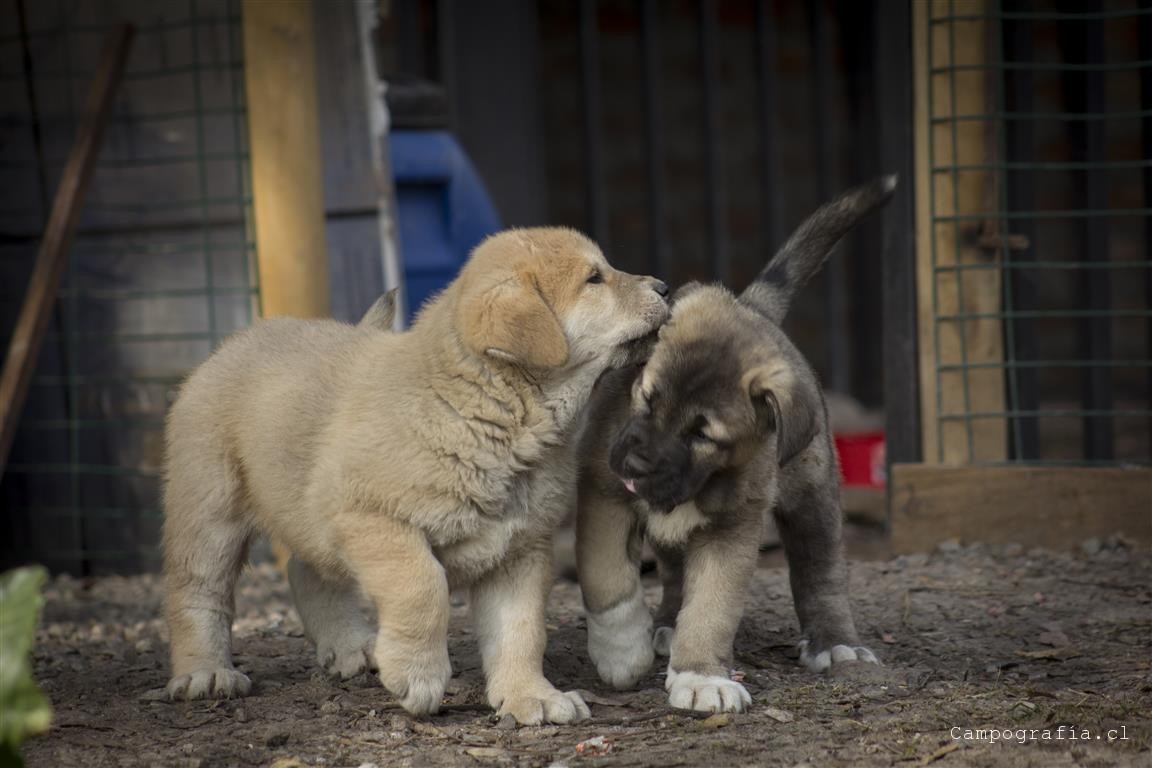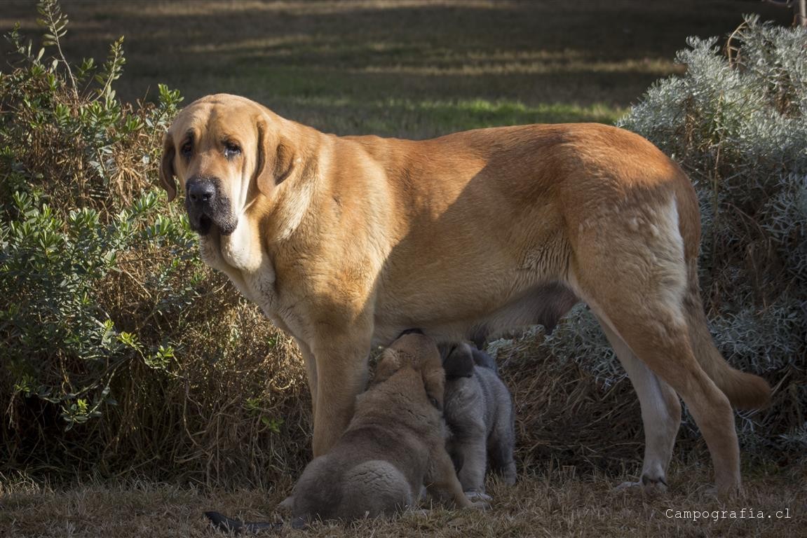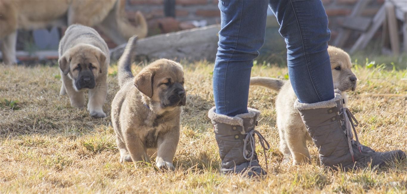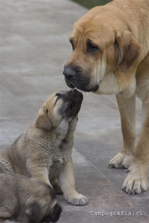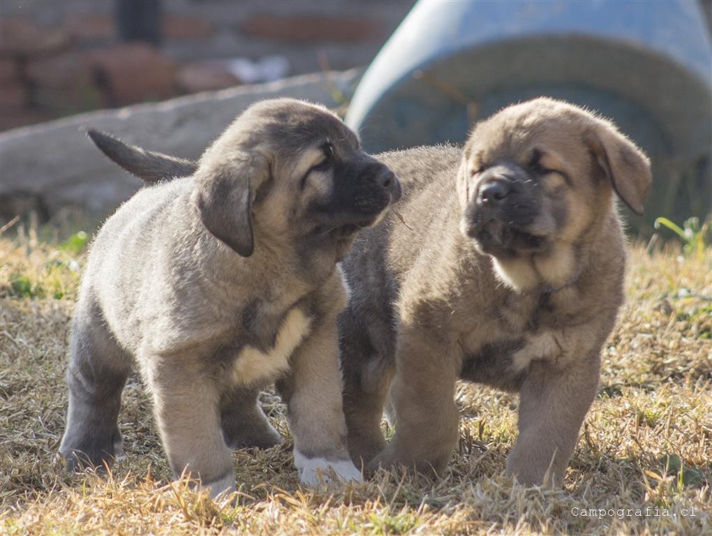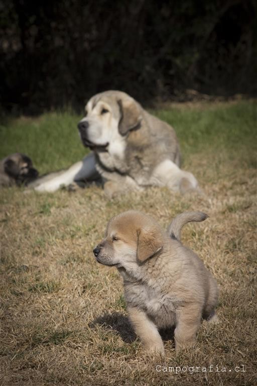 Mastín español es su raza. De padres inscritos y abuelos inscritos con premios, ellos están buscando un hogar. Aslan, León, Ámbar y Sara por el momento solo duermen y comen. Llevan un mes en este mundo y ya estan gigantes. Miren al papá, que sólo tiene un año…