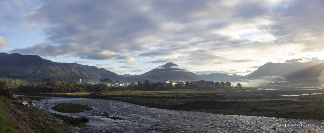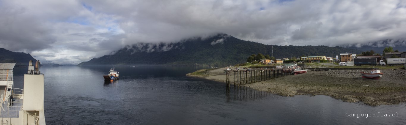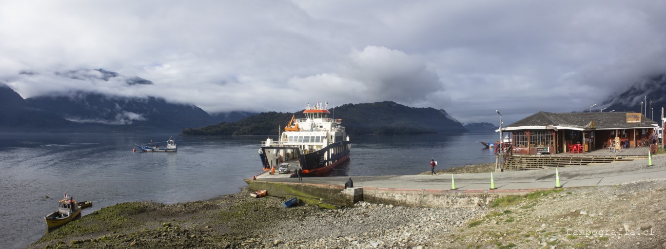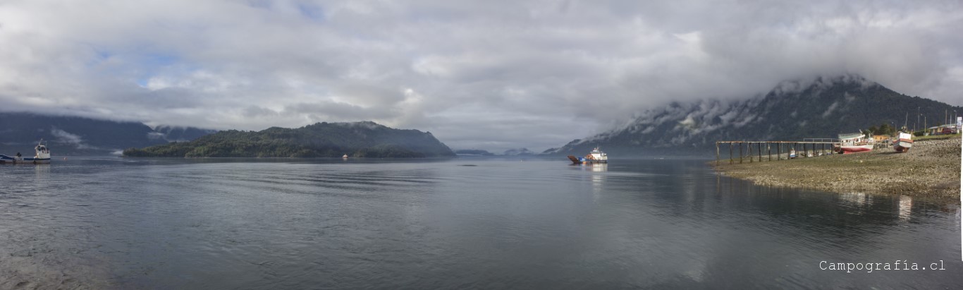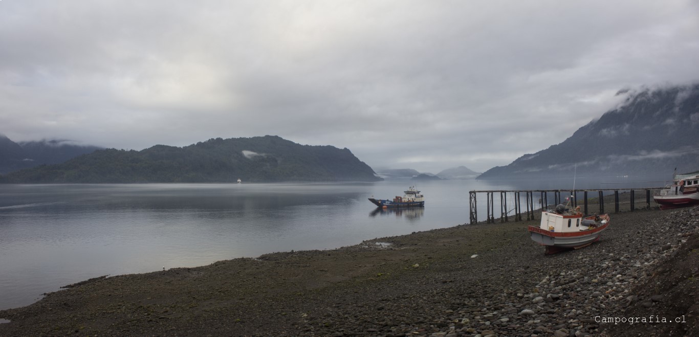 Luego de una hora mas, llegamos a Caleta Gonzalo, donde se produce la estampida desde el transbordador por llegar a Chaitén. Este sector se encuentra dentro del parque Pumalin, donde por la ruta se encuentran diversos lugares de acampada y miradores. Y vacíos en esta fecha, por lo que el salir temprano me favoreció en la eleccion del paisaje para la mañana.
