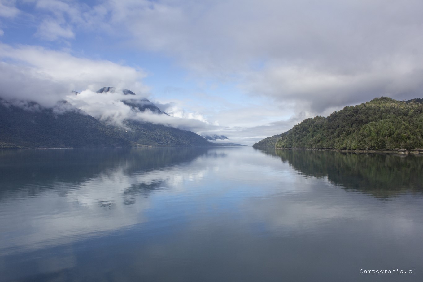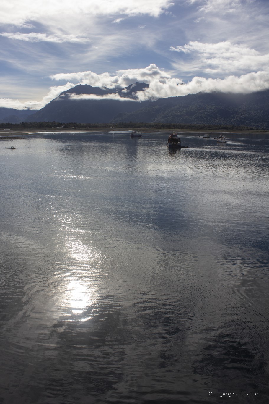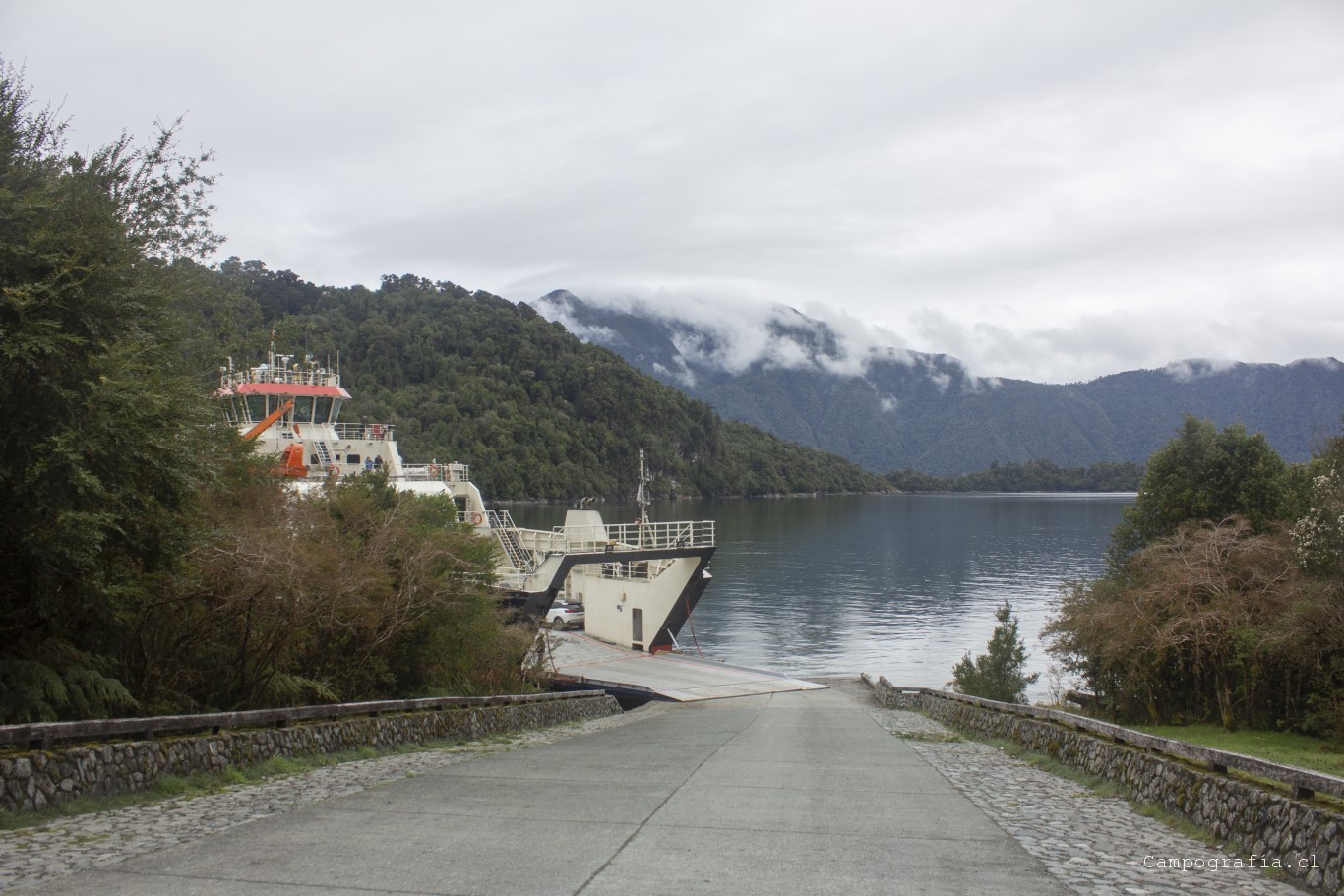 Luego de una hora mas, llegamos a Caleta Gonzalo, donde se produce la estampida desde el transbordador por llegar a Chaitén. Este sector se encuentra dentro del parque Pumalin, donde por la ruta se encuentran diversos lugares de acampada y miradores. Y vacíos en esta fecha, por lo que el salir temprano me favoreció en la eleccion del paisaje para la mañana.