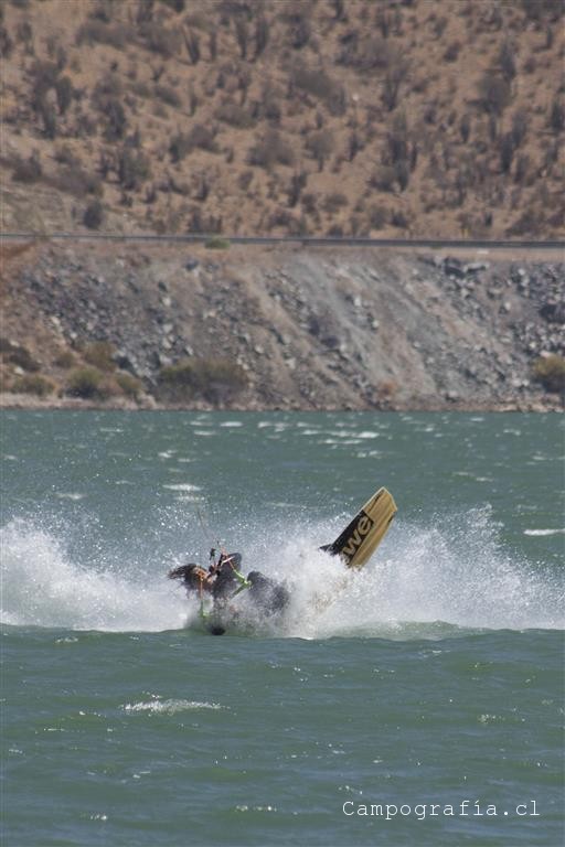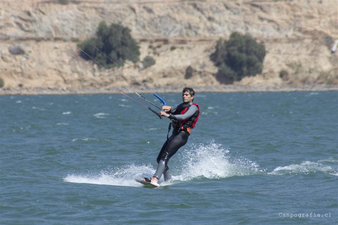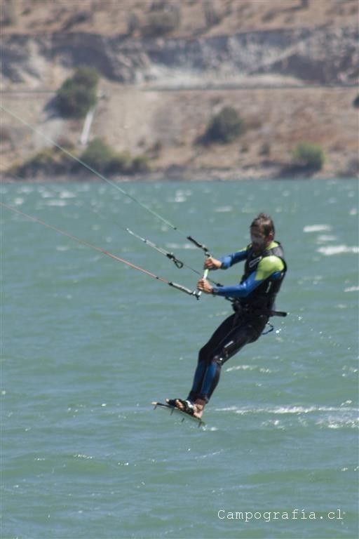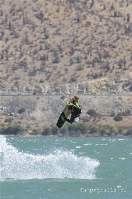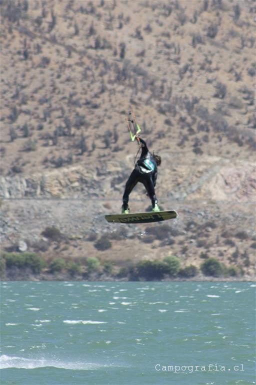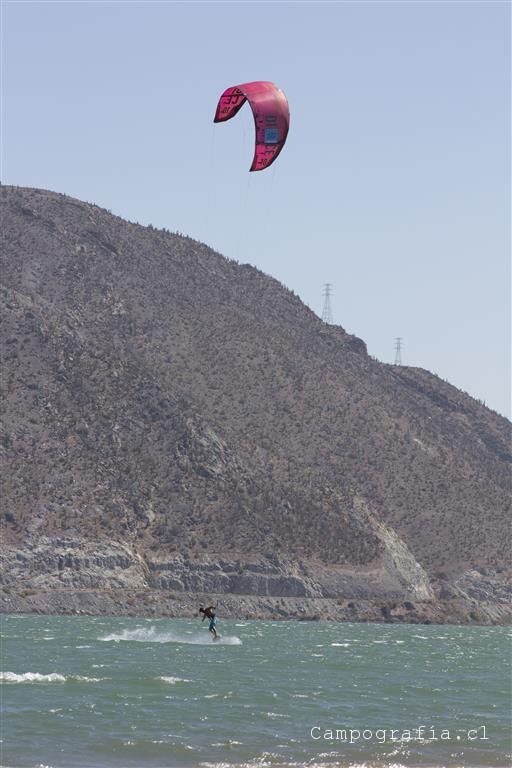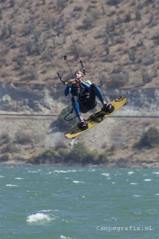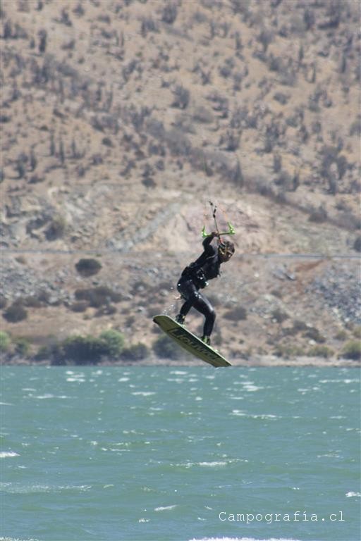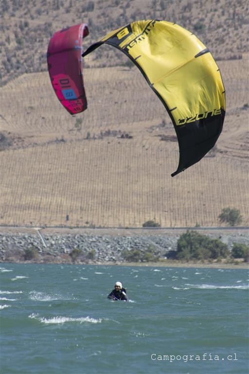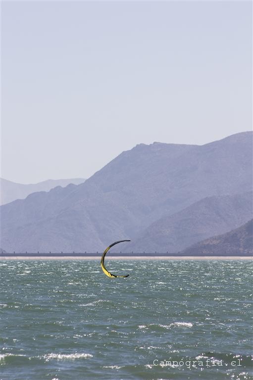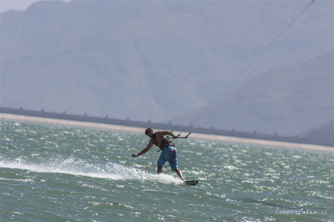 Dia lunes, hora de almuerzo, y en el embalse Puclaro muchos deportistas aprovechaban los vientos y el nivel del agua para practicar kitesurf. Unos recien saliendo de la orilla, y otros ya volando por el valle de Elqui.