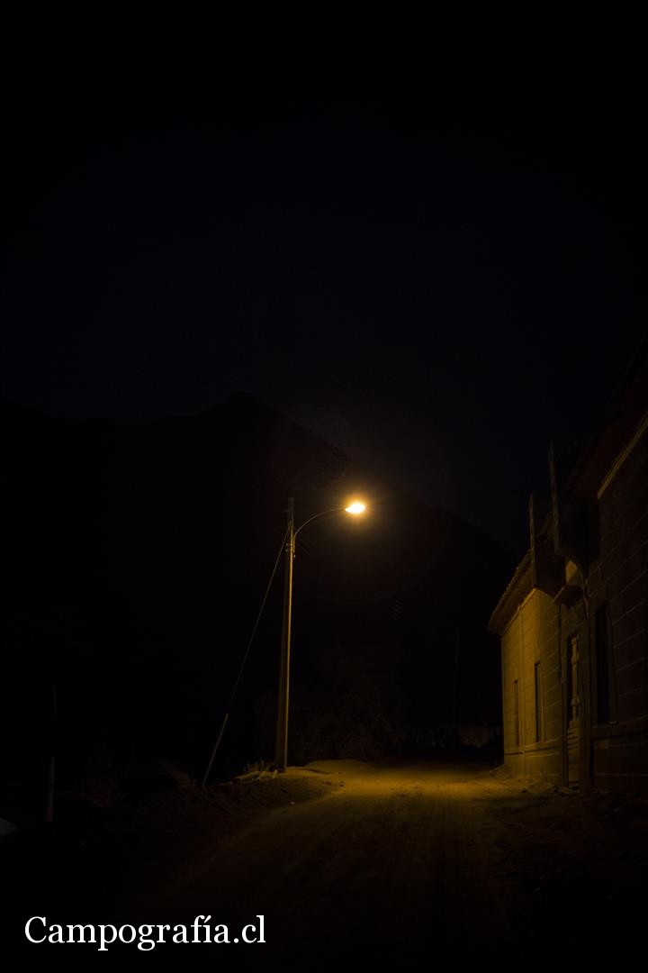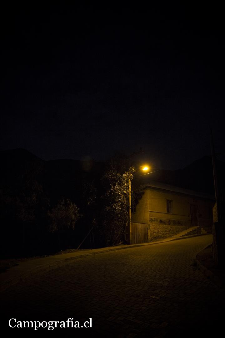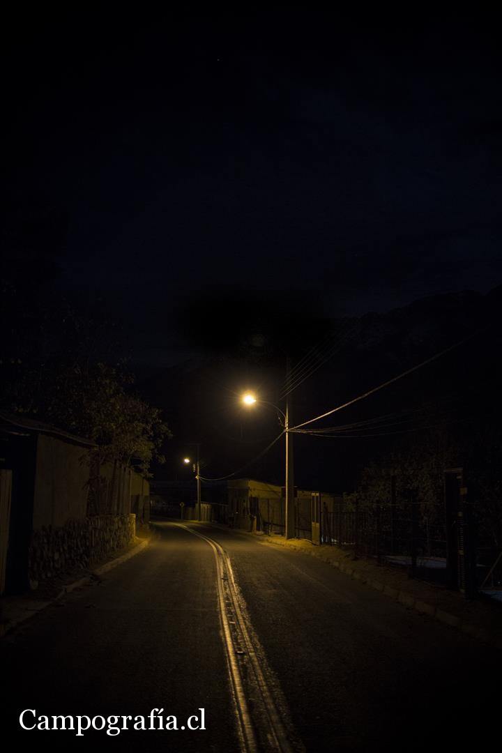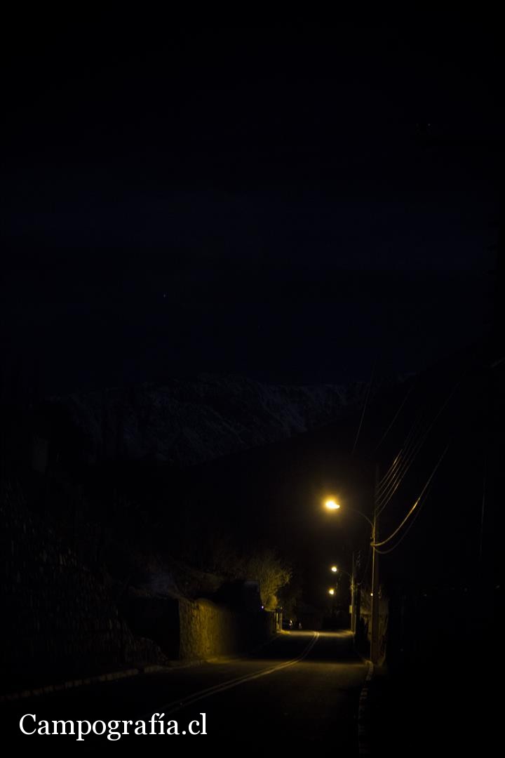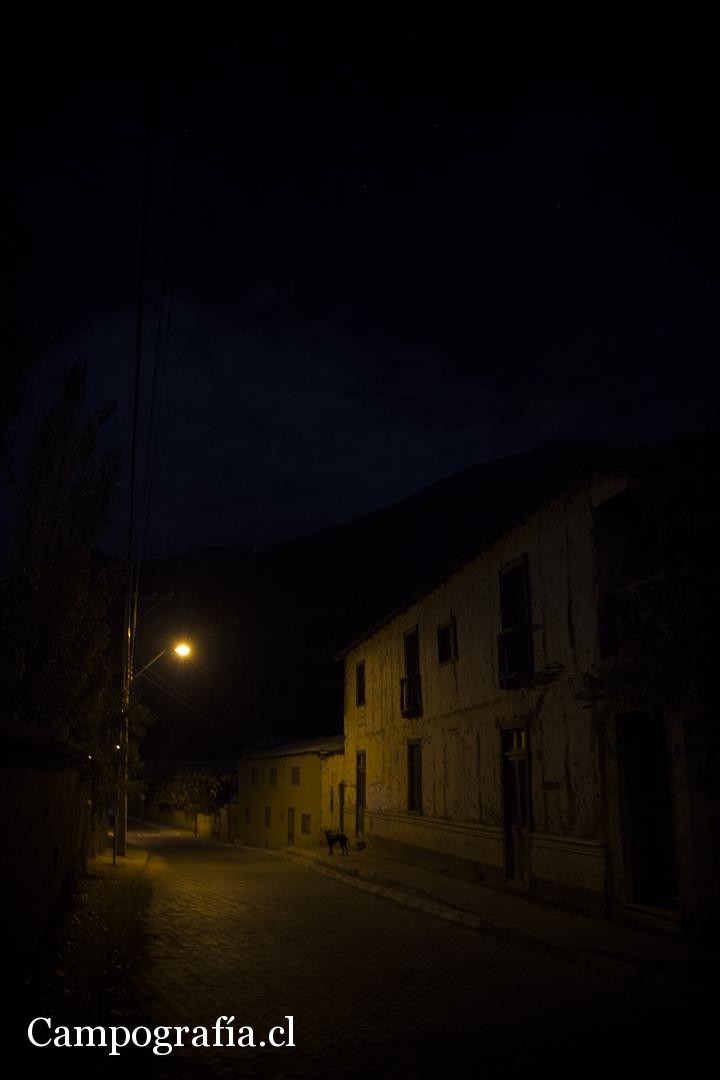 21 hrs., ya no queda nadie en las calles, el frio espanta a los ultimos perros que andan. Una noche oscura, bien noche, en Pisco Elqui.
