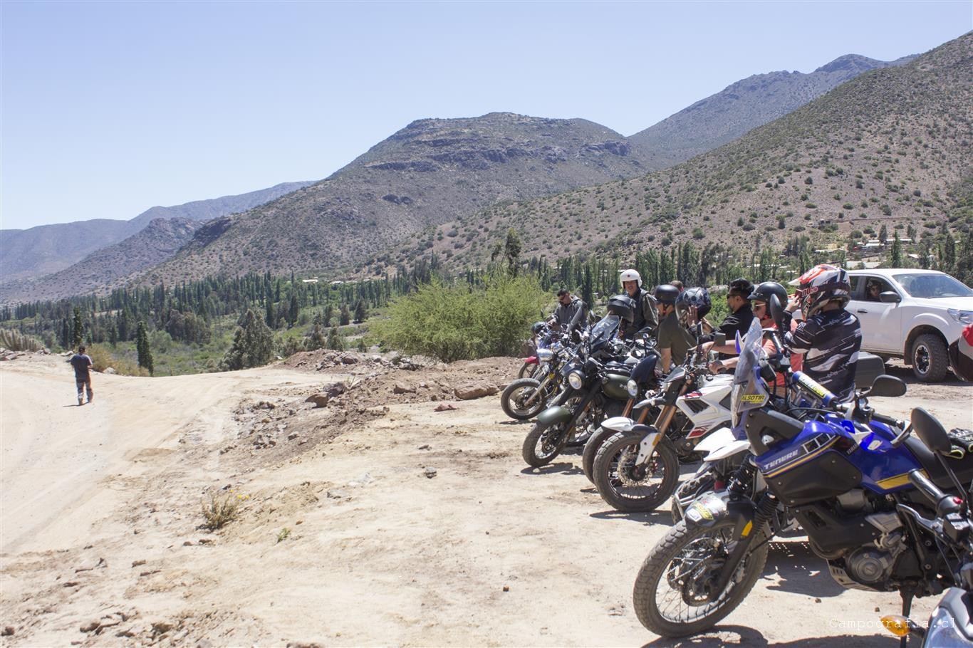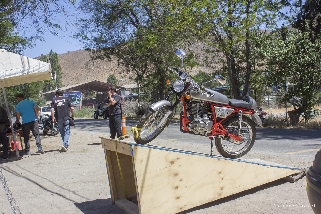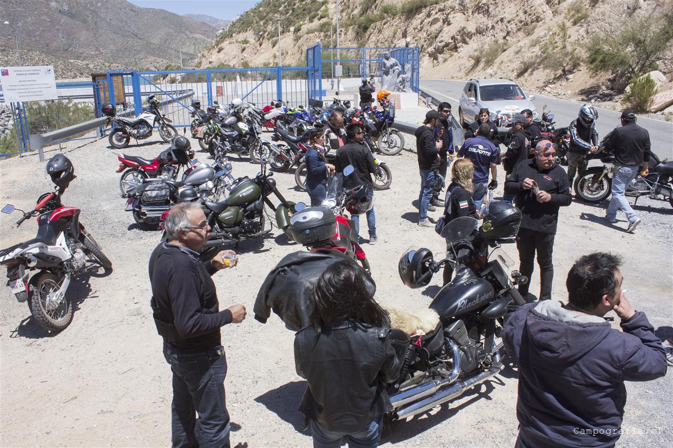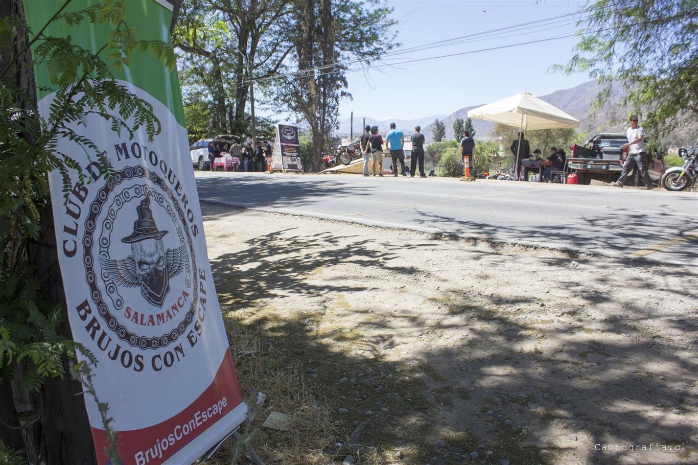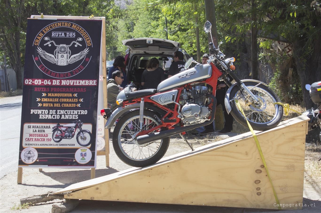 Ya en Limahuida. tomamos el cruce por el rio para llegar a la ruta que une Illapel con Salamanca, para asi llegar al «Gran Encuentro Motoquero Salamanca 2018 Ruta D85», organizado por los Brujos con Escape. El punto de encuentro fue en el Espacio Andes, antes de entrar a Salamanca. Ahi pudimos acampar y disfrutar de la camaradería de los motocumpitas de Salamana. Se hizo una ruta a la raja de Manquehua, y otra al embalse Corrales, en donde antes de cada ruta se recorría el centro de Salamanca. Asados en cada noche y sorteo de numerosos premios, sobre el cual destacaba la moto Café Racer. Llegaron grupos de La Serena (Descontrol Bikers) y de Los Vilos. En total participaron unas 30 personas aprox.